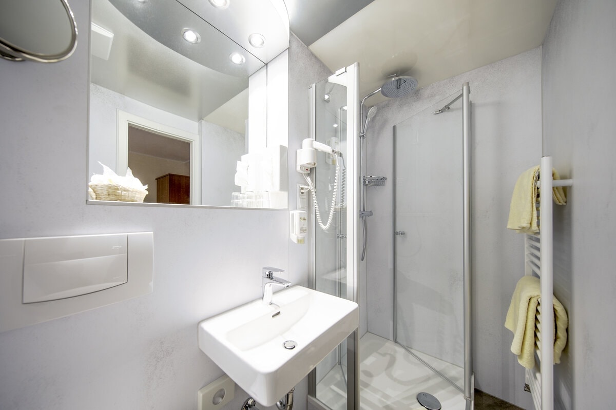 Neben dem ästhetischen Aspekt wurde bei der Neugestaltung der Bäder im Hotel Brunner Amberg auch großer Wert auf Funktionalität und Komfort gelegt. Die neuen Badezimmer sind so gestaltet, dass sie den Bedürfnissen der Gäste in jeder Hinsicht gerecht werden. Großzügige Duschkabinen bieten ausreichend Platz für Bewegungsfreiheit, während moderne Badarmaturen eine bequeme Nutzung gewährleisten. Darüber hinaus wurden hochwertige Handtücher und Pflegeprodukte bereitgestellt, um den Gästen ein Gefühl von Luxus und Wohlbefinden zu vermitteln. Diese Verbesserungen tragen dazu bei, dass der Aufenthalt im Hotel Brunner Amberg zu einem unvergesslichen Erlebnis wird.